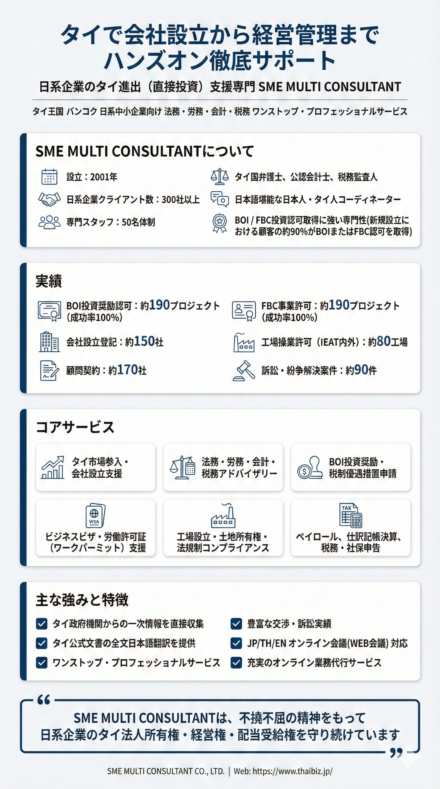 SMEマルチコンサルタントはタイ王国、バンコクの日系中小企業向け法務/労務/会計/税務コンサルティング会社です。